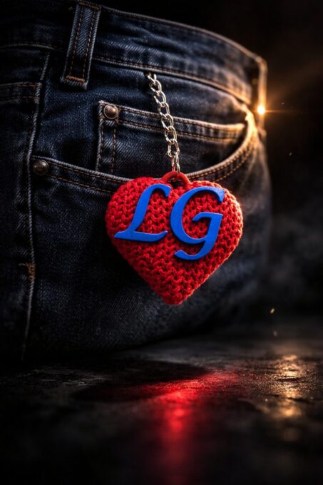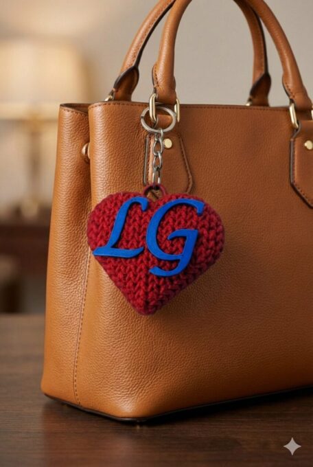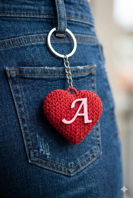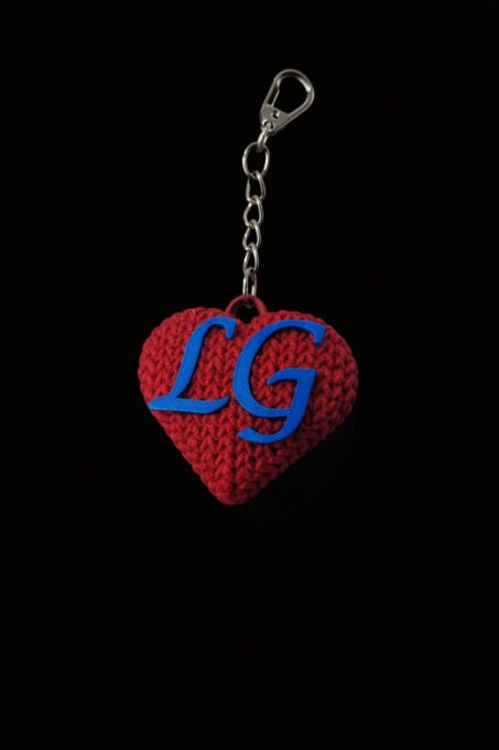 Lindo chaveiro 3D coração com acabamento texturizado em tricô com inicial do Nome podendo colocar iniciais dos dois lados